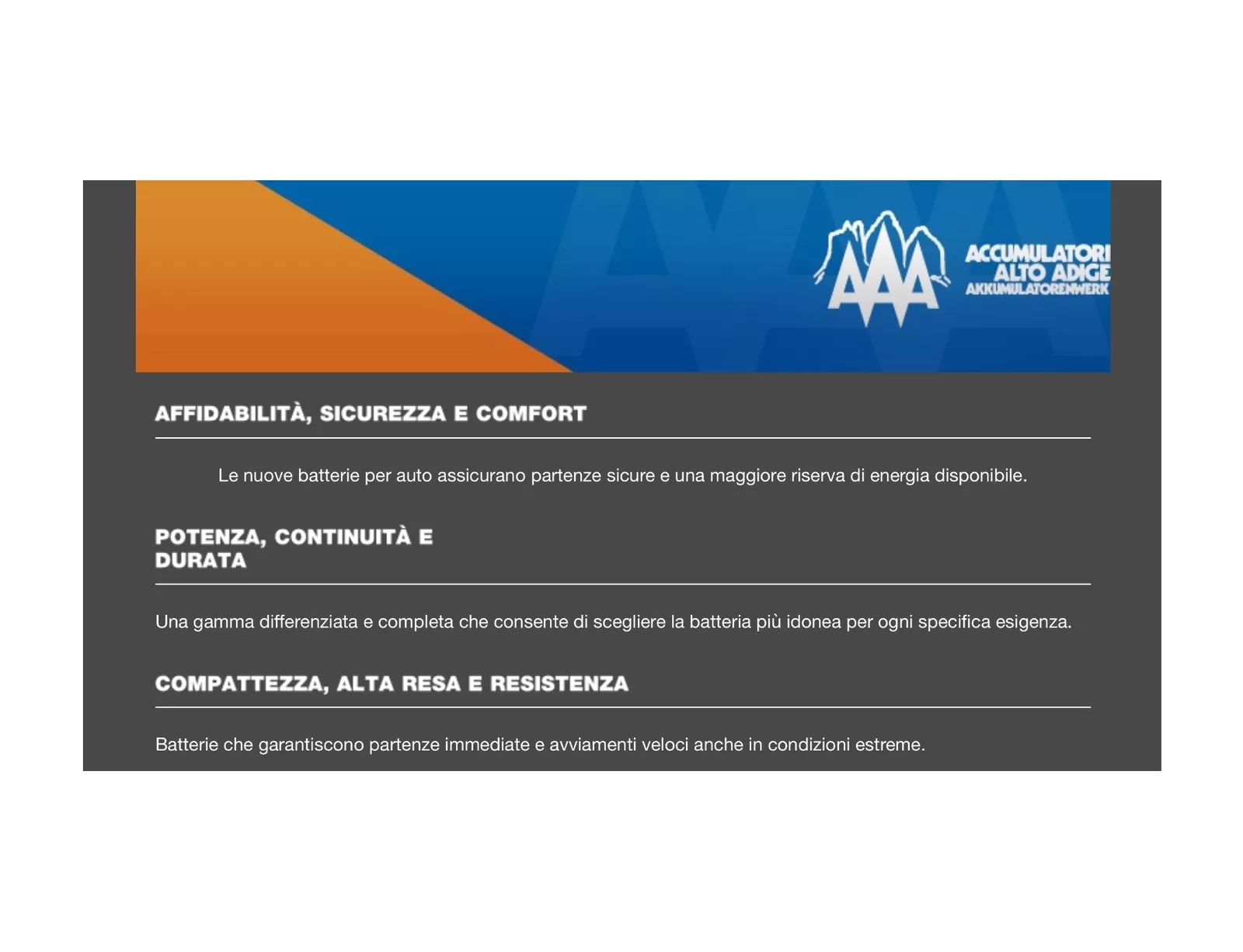 ALTO ADIGE EXTREMA: la massima potenza per le richieste energetiche più esigenti delle auto moderne nei più diffusi formati Europei (DIN), con la sicurezza di un prodotto 100% Italiano.