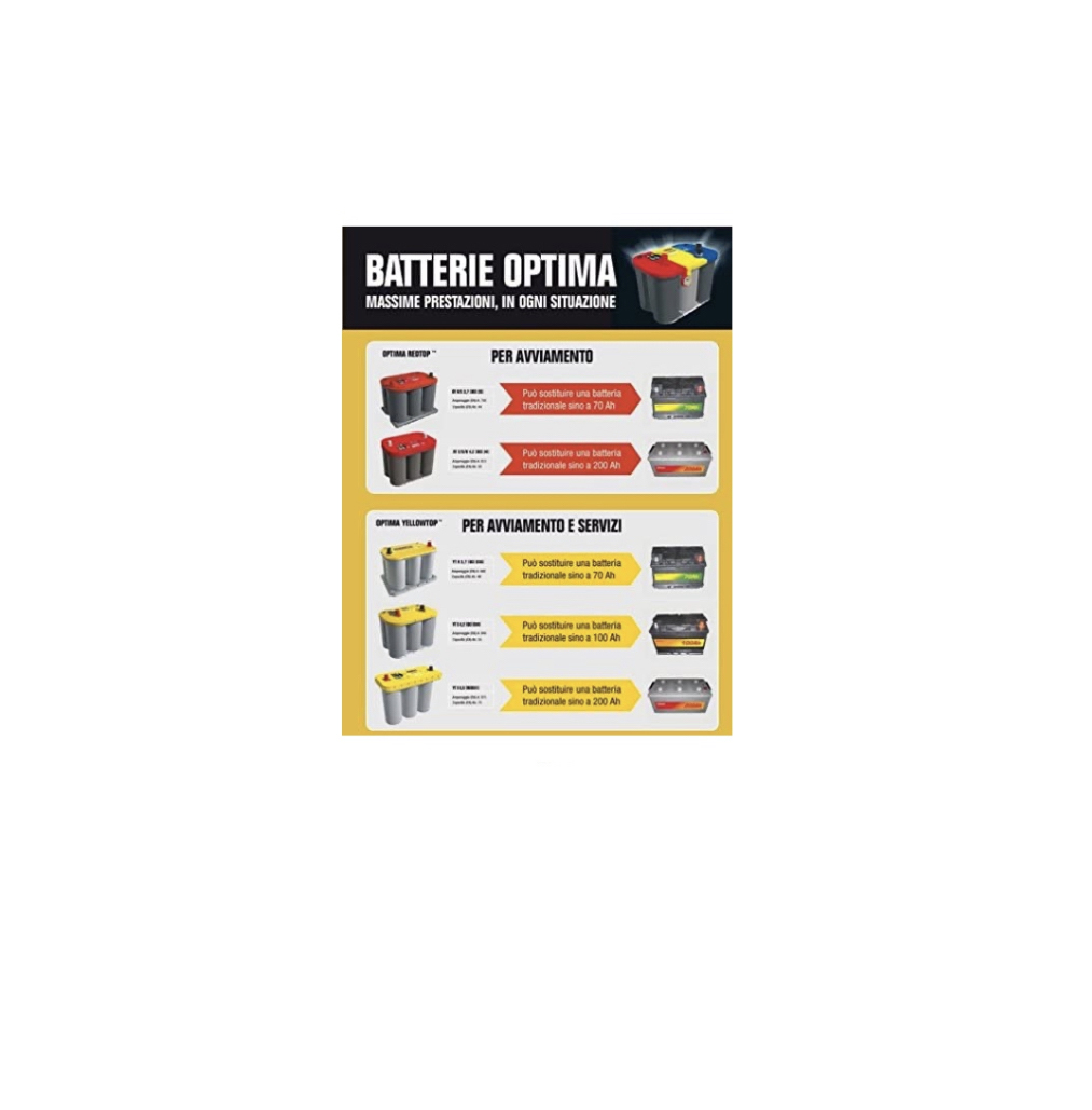 Recensisci per primo “BATTERIA DI AVVIAMENTO OPTIMA 50Ah 815A 12V – RED TOP, AGM, TECNOLOGIA SPIRALCELL RT U 4.2 (SX)”